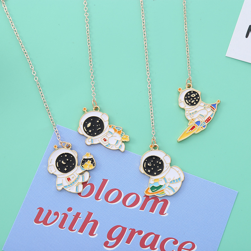 Embark on an interstellar reading adventure with our Creative Science Fiction Astronaut Bookmark. This delightful stationery piece is not only practical but also adds a touch of whimsy to your book collection. Crafted from durable metal, it features an array of charming designs including astronauts holding planets, cycling, and carrying rockets, ensuring that every page you turn is met with a spark of creativity.